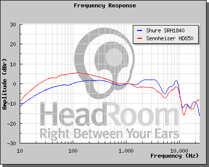 Gráfica de respuesta en frecuencia Shure SRH 1840 vs. Sennheiser HD 650